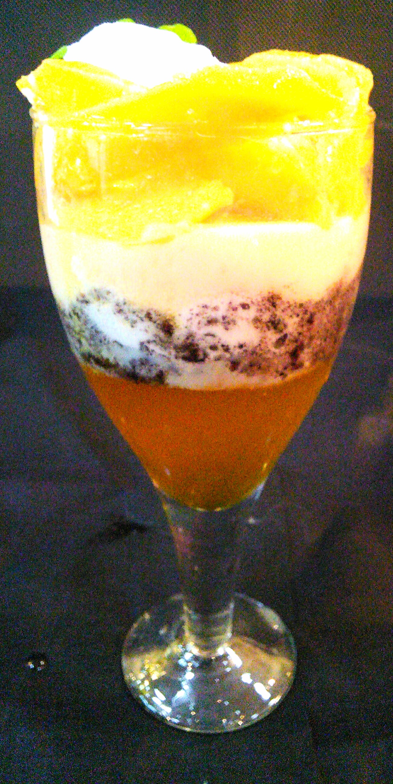 Build the bottom layer with mango jelly. It is very light and delicate and has a transparent hue. Top it with crushed Oreo mixed with some butter and honey. If serving immediately you can try Oreo with some Vanilla ice cream (my recommendation). But don’t try it if planning to serve later. Top this layer with Mango custard, chopped mango and Vanilla ice cream.