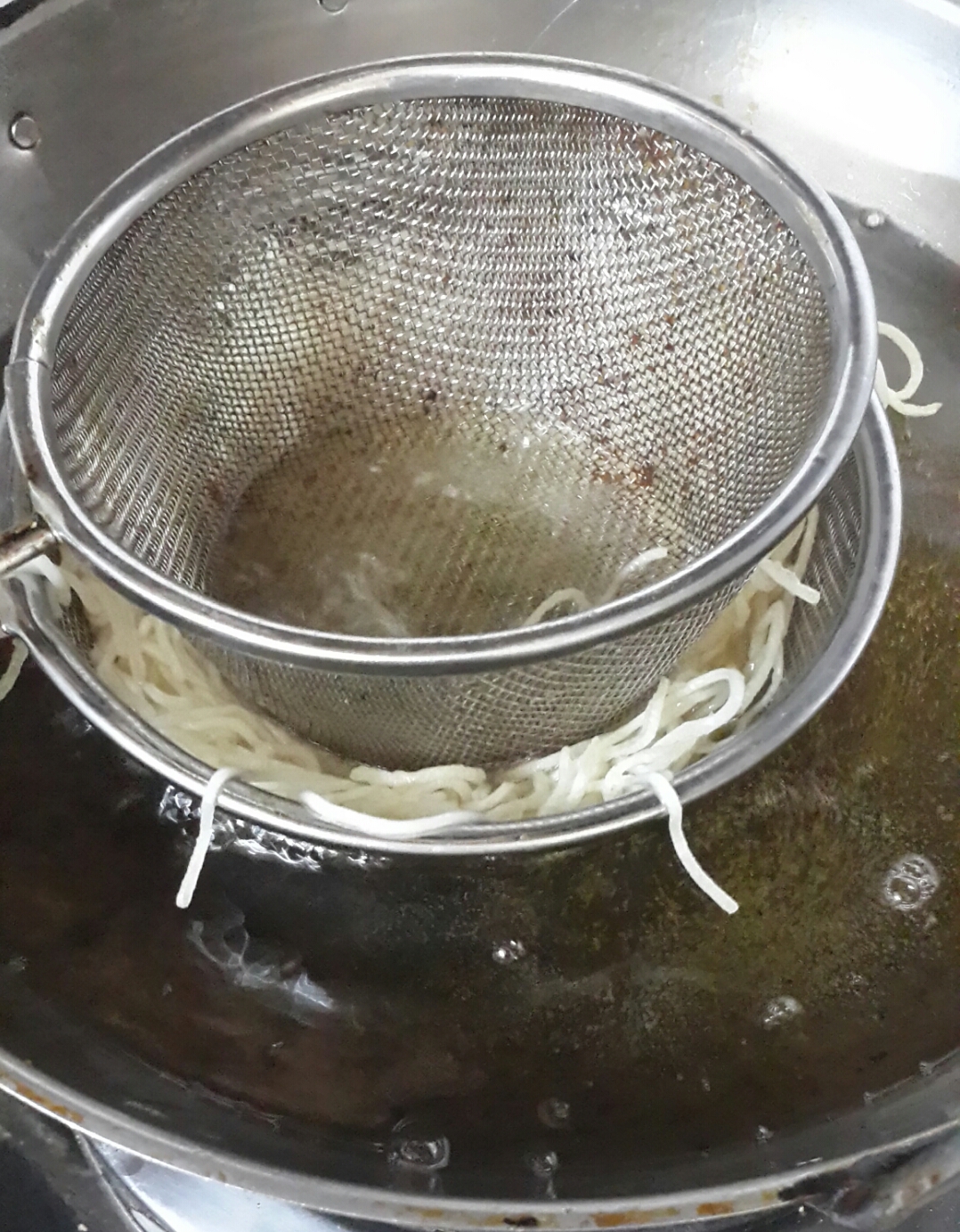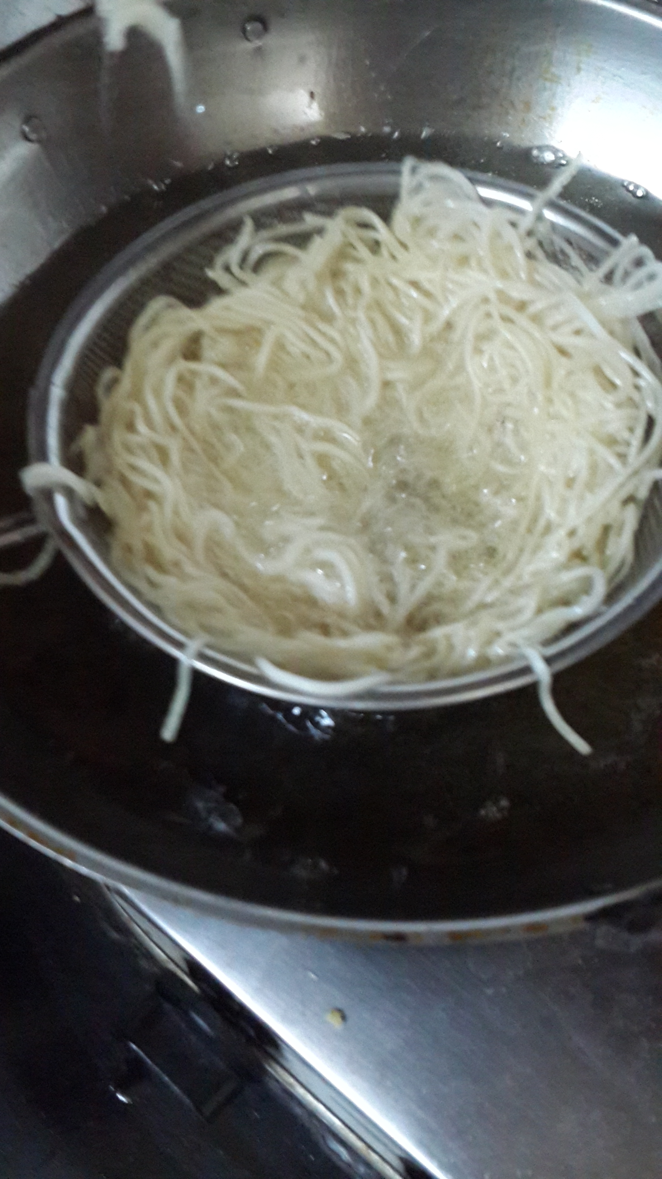 7. Serve hot on the noodle basket.