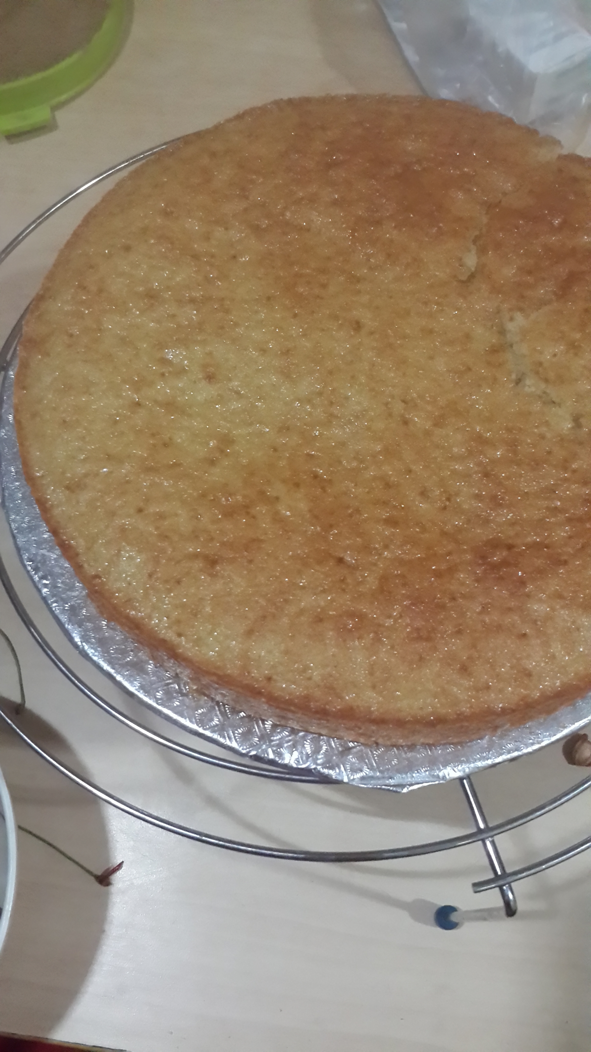 - Bake the sponge cakes in a similar shaped and sized moulds.Trim off the brown crust.