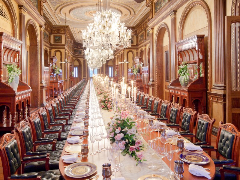 “The library at Falaknuma Palace is as majestic as Windsor Castle’s library in England. Modeled after Windsor Castle’s library, it treasures a large collection of rare manuscripts and books from the Nizam’s repertoire. The billiards table in the billiards room is one of the two pieces of its kind. The other is at the Buckingham Palace in London.”